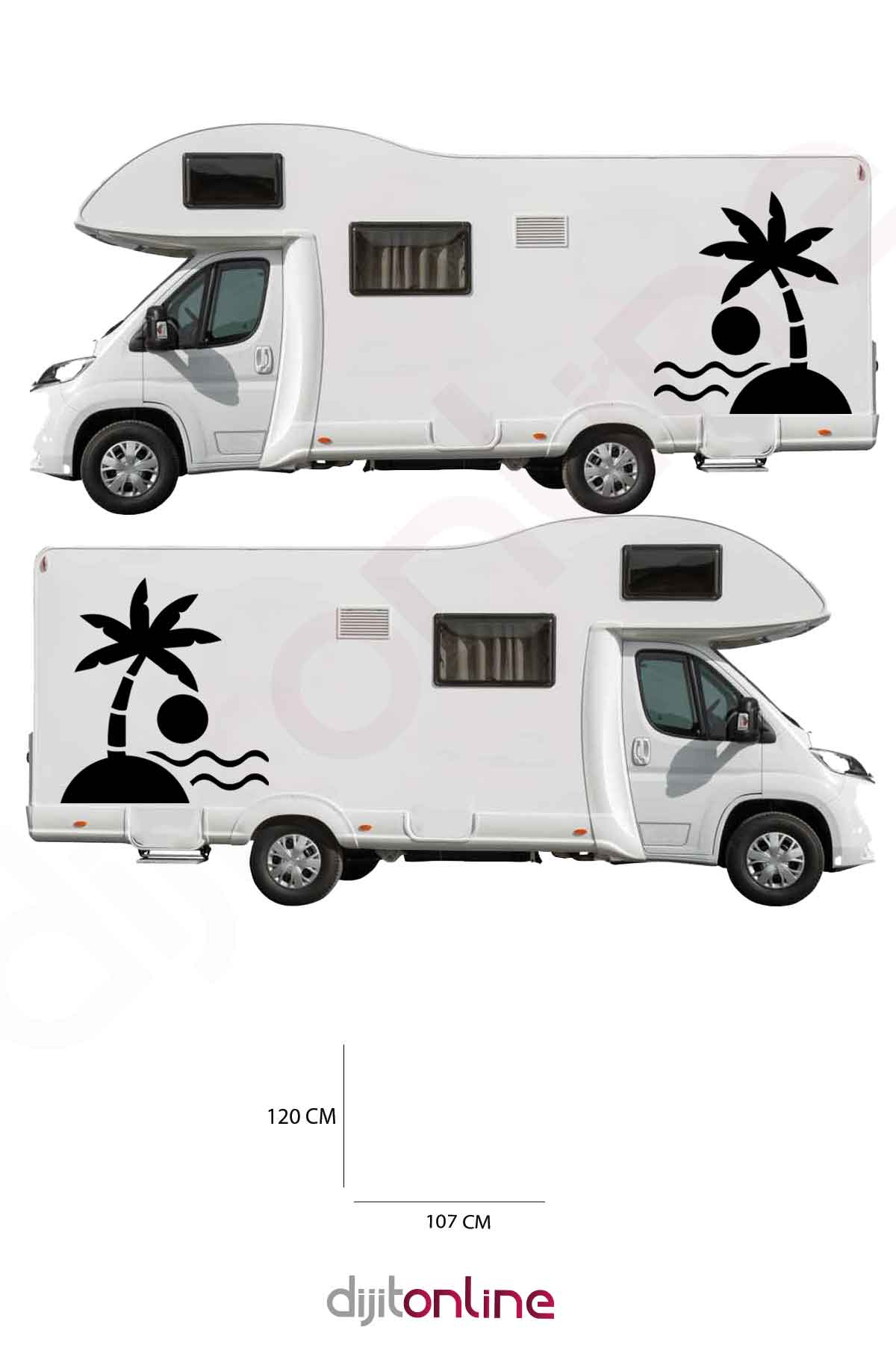 2 Adet Karavan Sticker – Palmiye Sticker – Güneş ve Dalga Sticker – 120×107 Cm