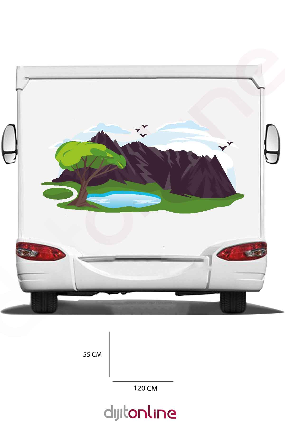 Karavan Baskı Sticker -Dağ ve Deniz Sticker – 120×55