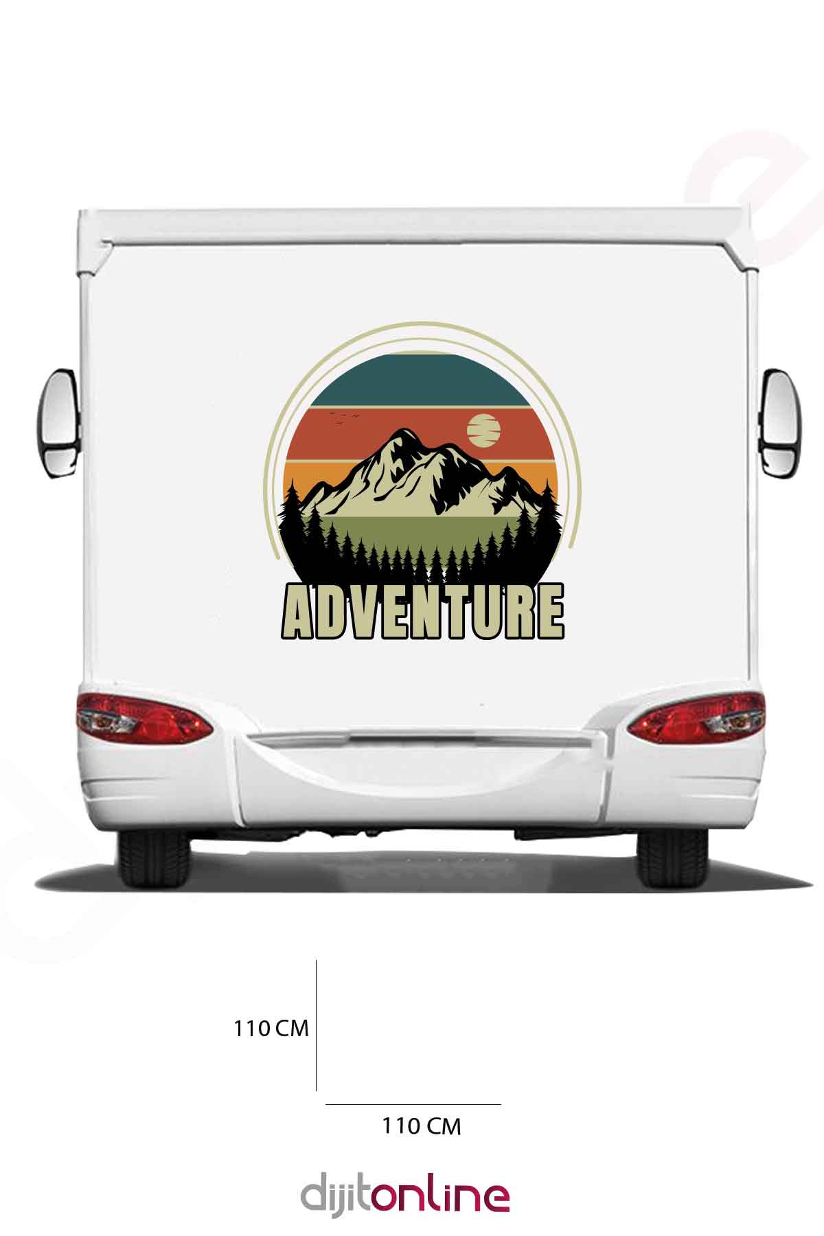 Karavan Dağ Baskı Sticker – Güneş Sticker – Kuş Sticker – 110×97 Cm