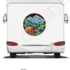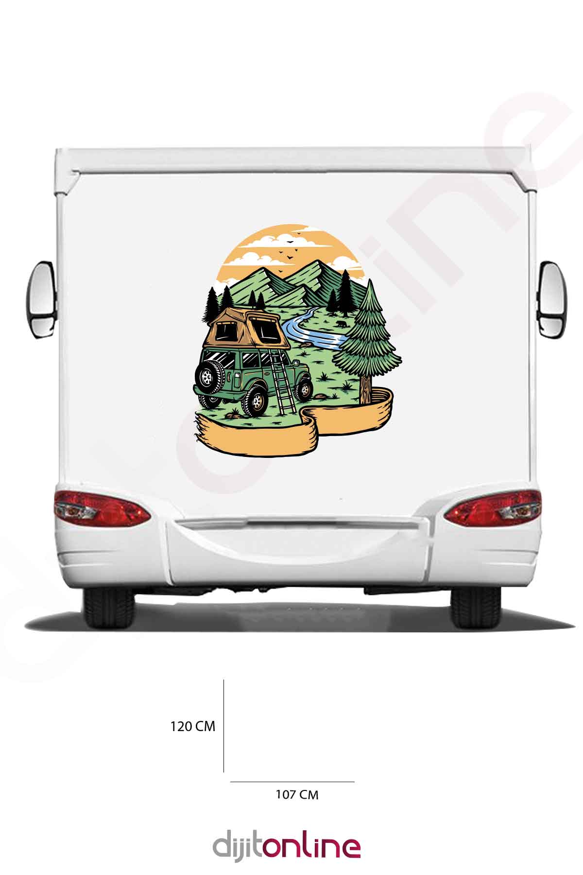 Karavan Kamp Baskı Sticker – Ağaç Sticker – Dağ Sticker – 107×120 Cm