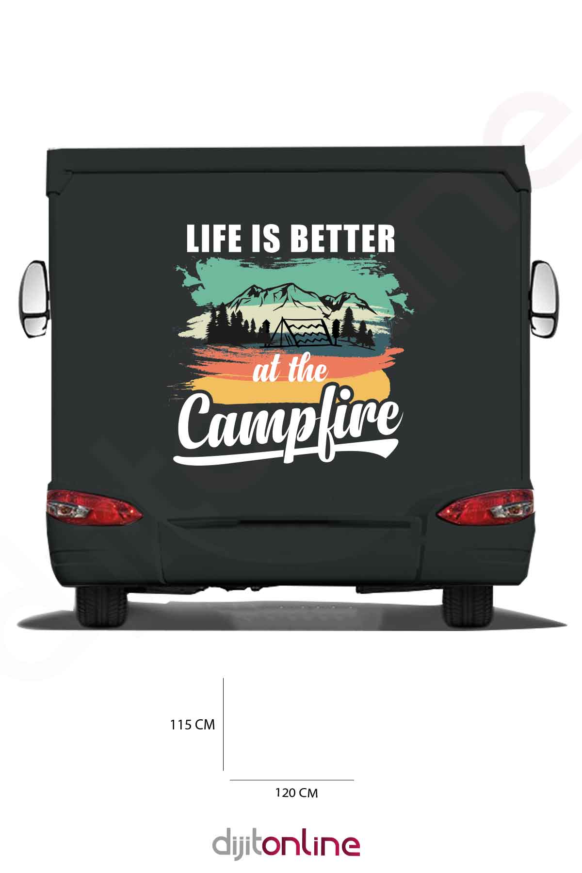 Karavan Kamp Baskı Sticker – Ağaç ve Dağ Sticker – 120×115 Cm