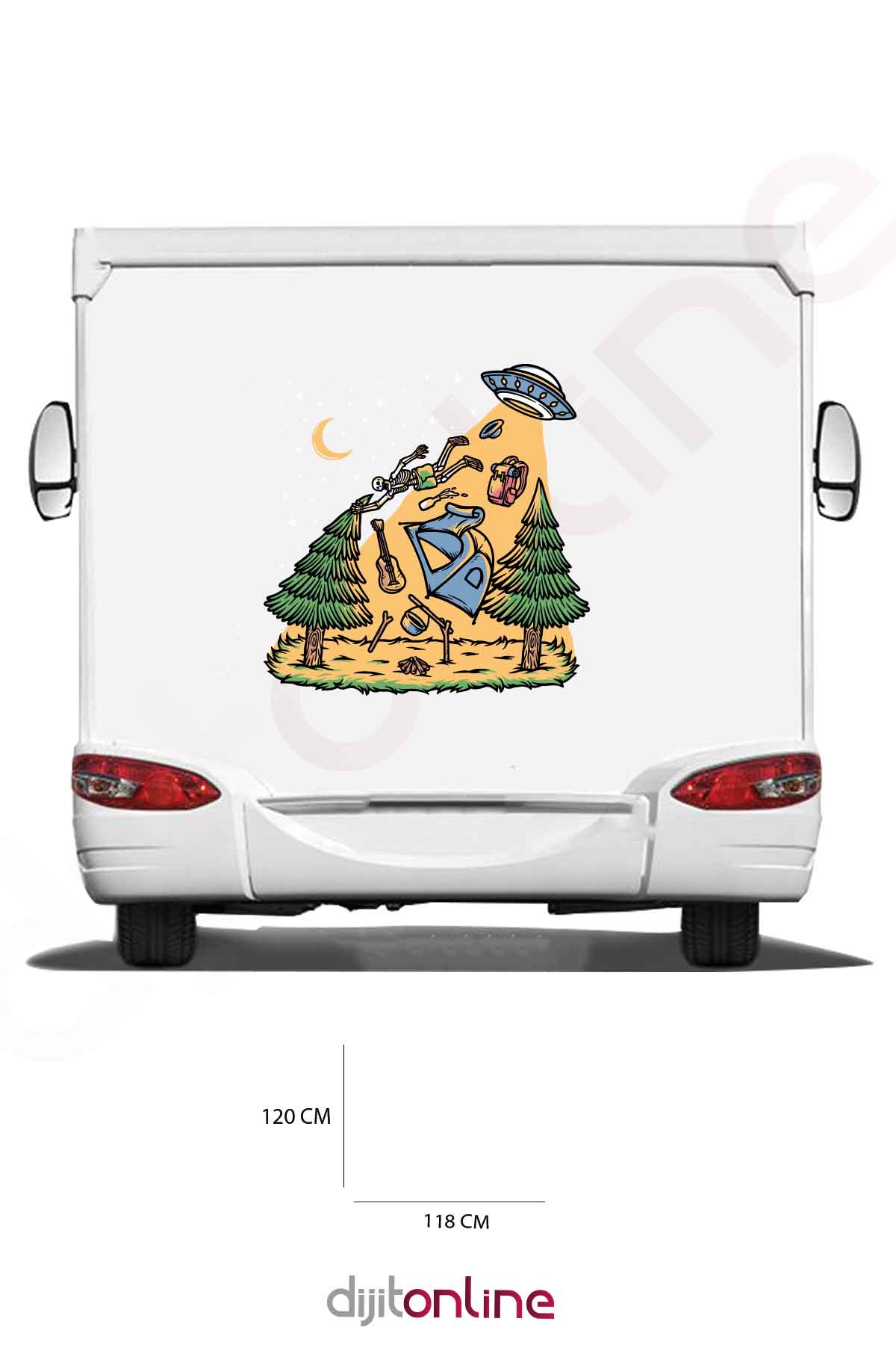 Karavan Kamp Baskı Sticker – Ay ve Yıldız Sticker – Ağaç Sticker – 118×120 Cm
