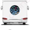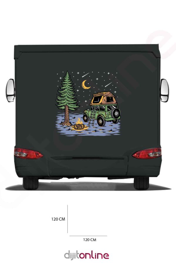 Karavan Kamp Baskı Sticker – Ay ve Yıldız Sticker – Kamp Ateşi Sticker – Ağaç Sticker – 120×120 Cm