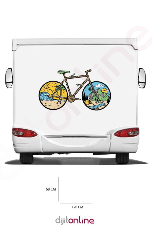Karavan Kamp Baskı Sticker- Bisiklet Sticker – Güneş ve Dalga Sticker – Dağ Sticker – 120×68 Cm