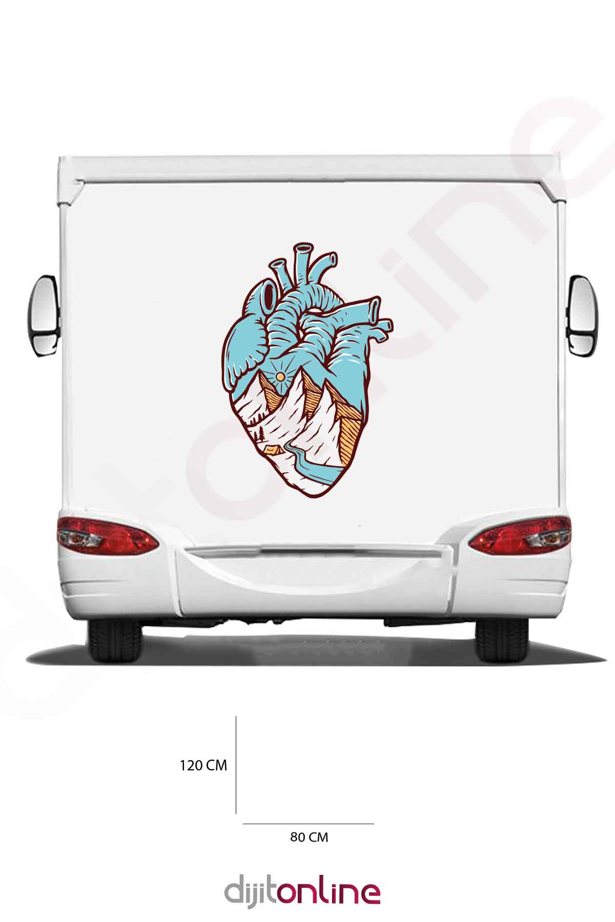 Karavan Kamp Baskı Sticker – Dağ Sticker – Kalp Sticker – Güneş Sticker – 80×120 Cm
