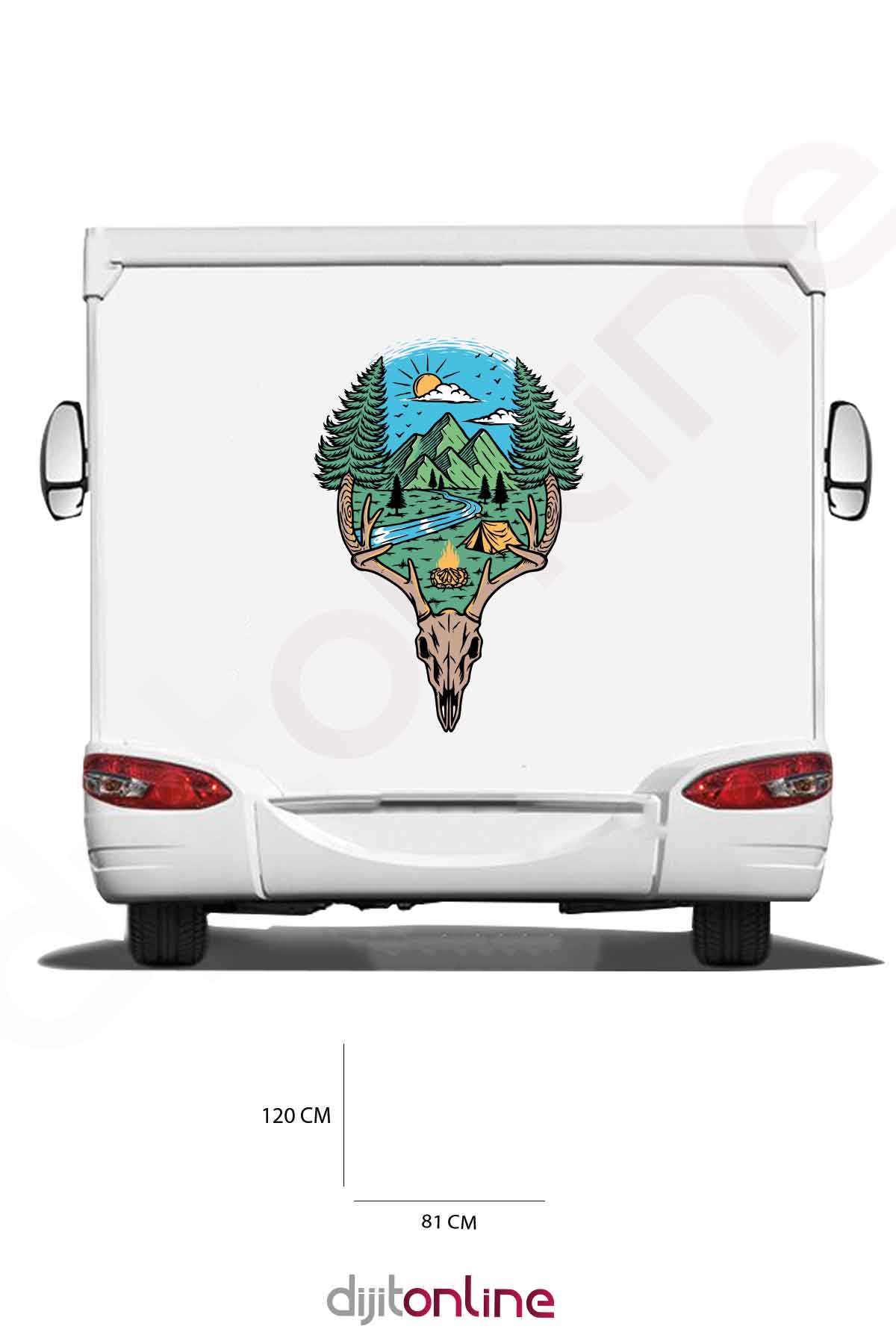 Karavan Kamp Baskı Sticker – Geyik Sticker – Kamp Çadırı Sticker – 81×120 Cm