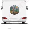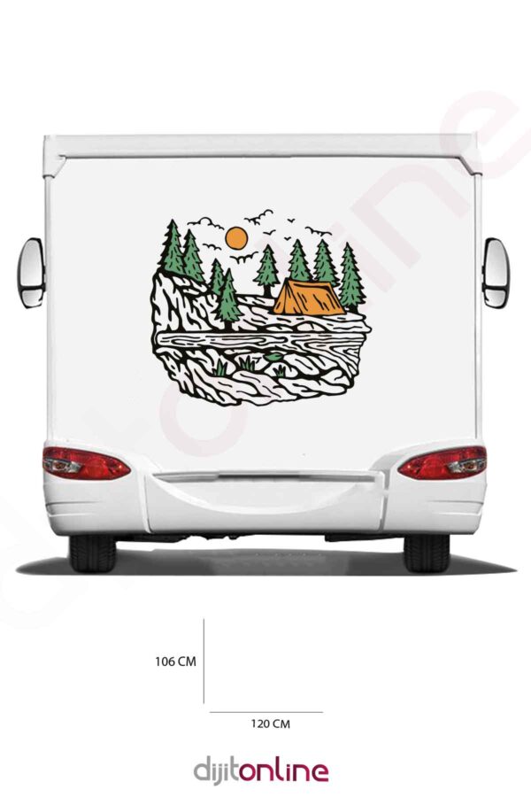Karavan Kamp Baskı Sticker – Kamp Çadırı Sticker – Ağaç Sticker – Güneş ve Kuş Sticker – 120×106 Cm