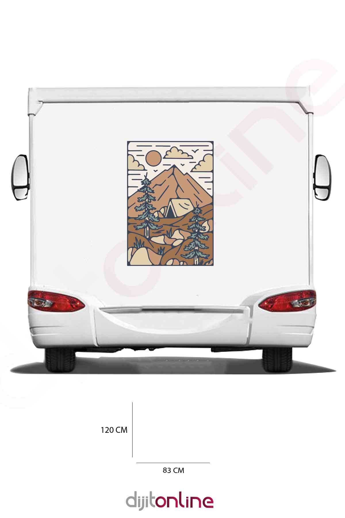Karavan Kamp Baskı Sticker – Kamp Çadırı Sticker – Dağ ve Güneş Sticker – 83×120 Cm