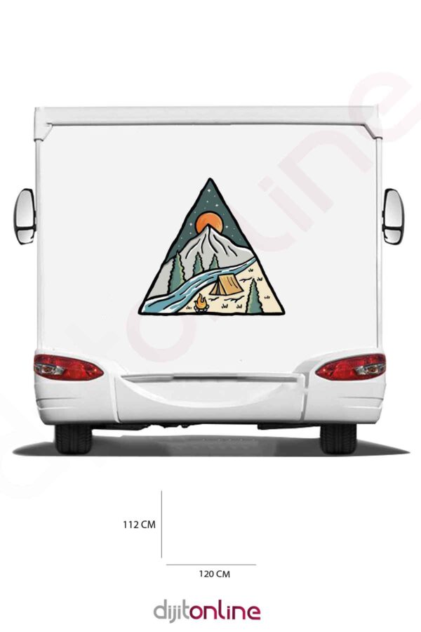 Karavan Kamp Baskı Sticker – Kamp Çadırı Sticker – Kamp Ateşi Sticker – Ağaç Sticker – 120×112 Cm