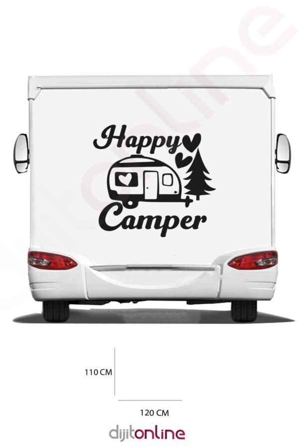 Karavan Kamp Sticker – Happy Camper Sticker – Ağaç ve Kalp Sticker – 120×110 Cm