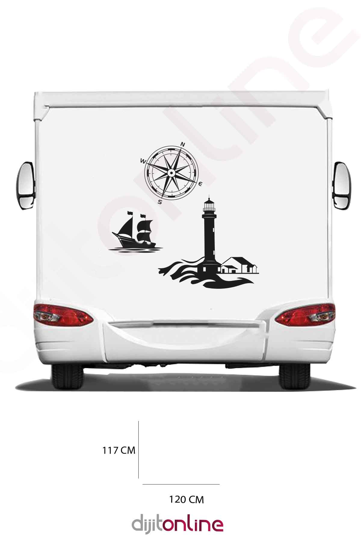 Karavan Sticker – Deniz Feneri Sticker – Pusula Sticker – Kayık Sticker – 120×117 Cm
