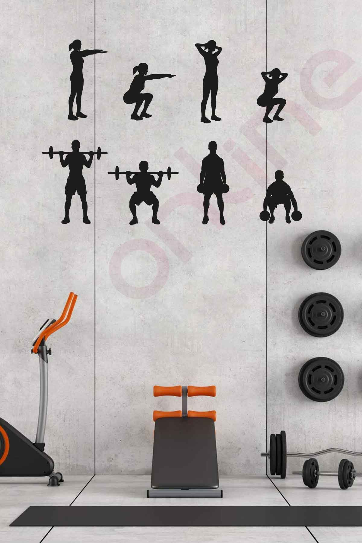 Spor Salonu Duvar Sticker – Egzersiz Sticker – Spor Hareketleri Sticker – 120×86 Cm