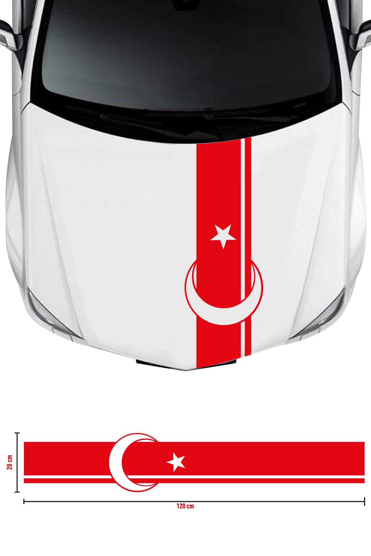 Sticker Ön Kaput Ayyıldızlı Tüm Araçlara Uyumlu Kırmızı Sticker